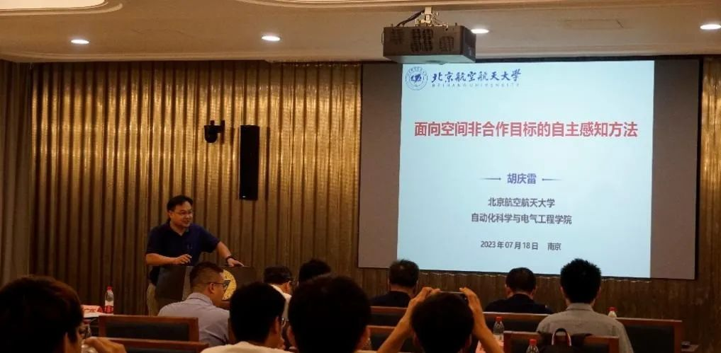 北京航空航天大學胡慶雷教授作了論壇的第二場報告,題為“面向空間非合作目標語義、結構和運動信息的自主感知方法”。胡教授圍繞空間非合作目標語義、結構和運動信息的自主感知任務進行相關算法的介紹,并根據空間目標感知等任務介紹了團隊搭建的空間目標雙臂捕獲半實物實驗平臺。