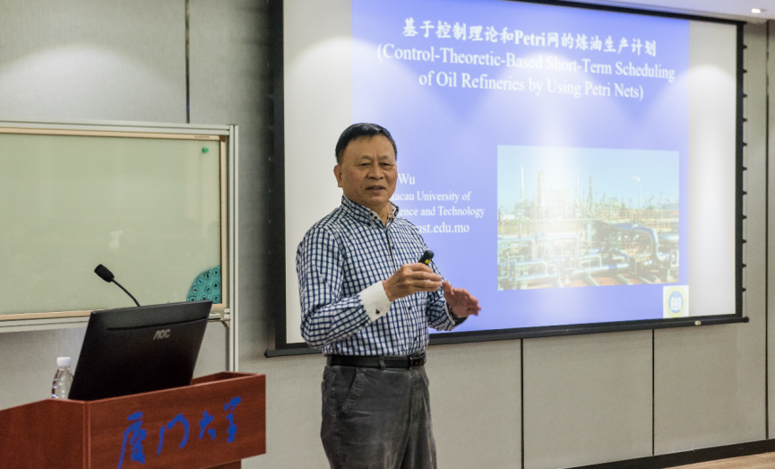 學(xué)會(huì)很榮幸地邀請(qǐng)到了來(lái)自澳門(mén)科技大學(xué)的伍乃騏教授、東南大學(xué)的李俊教授以及集美大學(xué)的徐軼群教授為廣大學(xué)會(huì)同仁做題為“基于控制理論和Petri網(wǎng)的煉油生產(chǎn)計(jì)劃”、“從工程到理論,我的實(shí)踐—著色旅行商問(wèn)題(CTSP)研究”及“無(wú)線自組網(wǎng)技術(shù)與海洋監(jiān)測(cè)應(yīng)用”的精彩報(bào)告。他們將理論研究成果分別應(yīng)用于煉油生產(chǎn)、化工應(yīng)用及海洋智慧監(jiān)測(cè),不忘科學(xué)研究服務(wù)社會(huì)的初心,牢記產(chǎn)學(xué)合作創(chuàng)新的使命,真正實(shí)現(xiàn)產(chǎn)學(xué)融合。