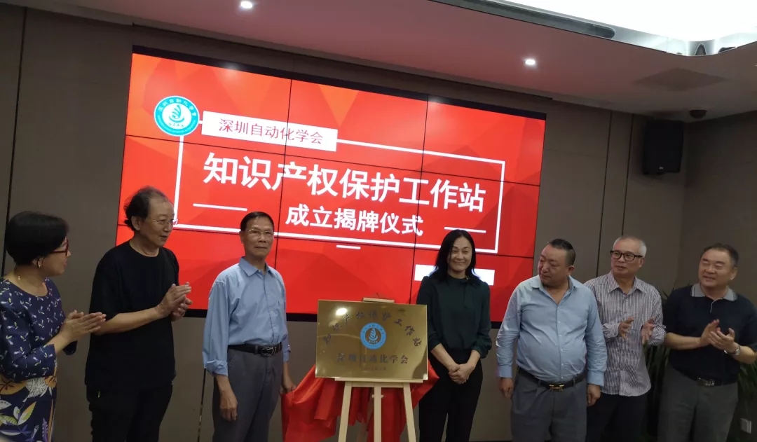 隨后,楊科長(zhǎng)、杜會(huì)長(zhǎng)以及學(xué)會(huì)其他領(lǐng)導(dǎo)代表一同為深圳自動(dòng)化學(xué)會(huì)知識(shí)產(chǎn)權(quán)保護(hù)工作站進(jìn)行揭牌。