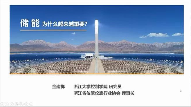 5月22日,浙江省儀器儀表行業協會理事長、浙江大學控制學院研究員、儲能及光熱發電專家金建祥老師,開啟了第一講《為什么儲能會越來越重要》。與大家熟知的太陽能光伏發電不同,太陽能光熱發電是一種更新的技術,與光伏發電相比具有連續、穩定輸出的特點,可以彌補光伏發電的各項短板,是一項具備成為基礎負荷電源潛力的新興能源應用技術,潛力巨大。它利用大量反射鏡以聚焦的方式將太陽直射光聚集起來,加熱工質并進行儲存,再利用高溫工質產生高溫高壓的蒸汽,驅動汽輪發電機組發電。由于大規模儲熱系統的存在,太陽能熱發電可以實現連續、穩定、可調度的高品質電力輸出,因而具備廣闊的發展前景。在各種形式的光熱發電技術中,塔式熔鹽儲能光熱發電因其較高的系統效率、較大的成本下降空間,成為最主流的光熱發電技術路線。金建祥教授報告聚焦“雙碳”目標,闡述了我國能源問題和可再生能源的現狀,介紹了儲能概念和熔鹽儲能技術在光熱發電上的應用和發展前景。